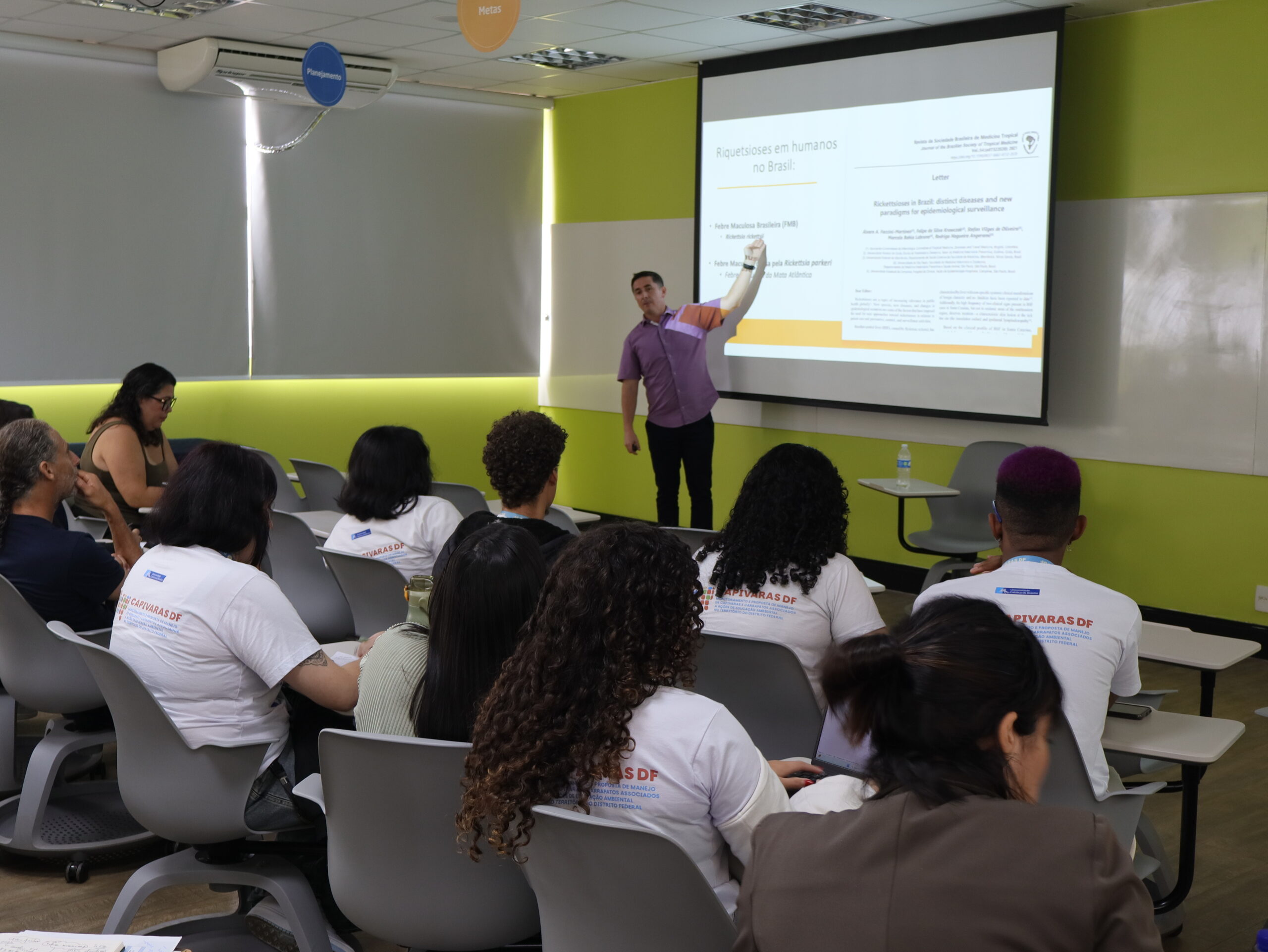 “O objetivo do workshop foi falar sobre a febre maculosa brasileira no contexto de Saúde Única, contribuir com o projeto e esclarecer dúvidas de pesquisadores, professores, alunos e profissionais da Secretaria de Saúde do DF, da Secretaria do Meio Ambiente e do Brasília Ambiental. Discutimos o que é a febre maculosa, como ela é transmitida, como é feito o diagnóstico e quando devemos nos preocupar, para levar informação correta à sociedade. Também debatemos a interpretação dos diagnósticos como ferramenta para fortalecer a prevenção e a vigilância dessa doença que envolve o carrapato, a capivara e uma bactéria com potencial de transmissão para a saúde humana”, concluiu.